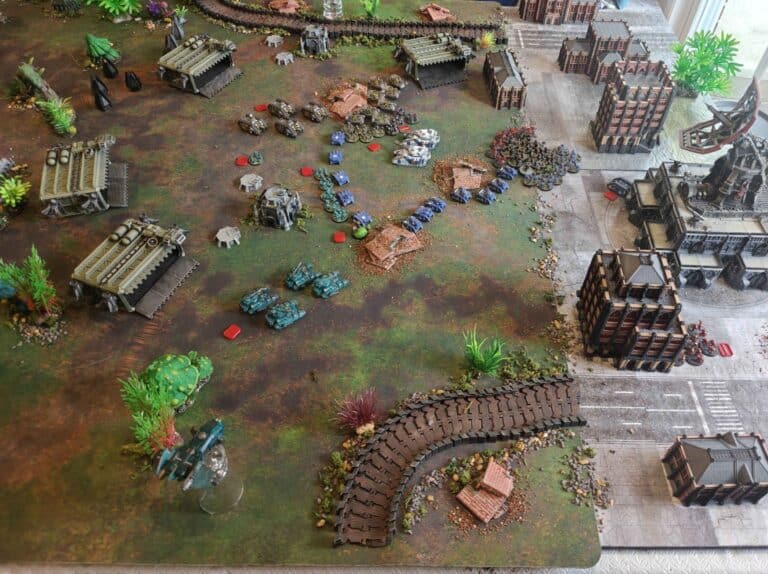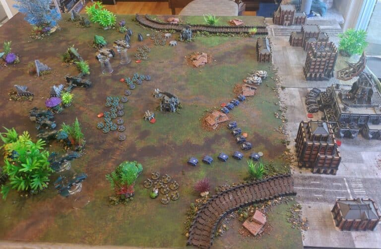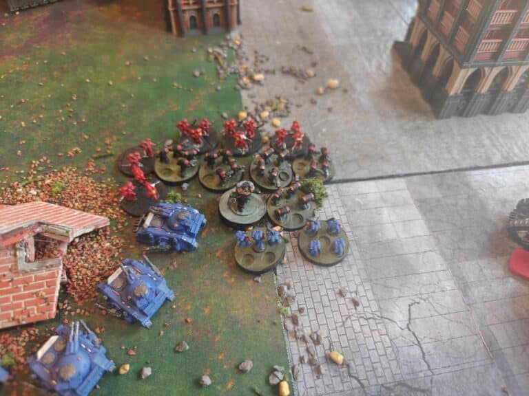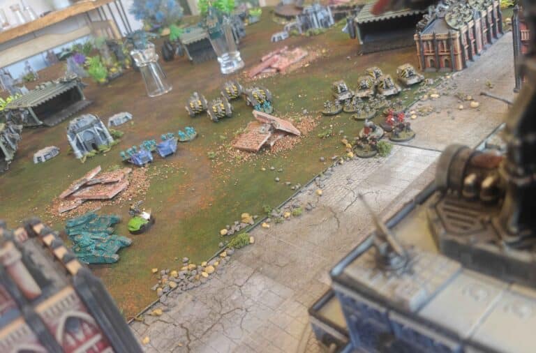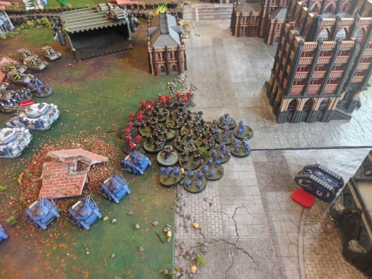 If the Loyalists were going to be too weak. We’ll just discuss that. And we’ll just give them additional reserves to allow more things onto the board on the Loyalist side. And if we felt that way about the Traitors, we can either give them more reserves or we can increase the game length. The Traitors have a significant point advantage and just have to get to the objectives. The challenge with so much coming in was getting the timing right. We planned a four-turn game. And ended up deciding to allow the game to extend to a fifth turn on the dice roll of a four plus. And the game did not extend, and that meant the Loyalists won. If the game did extend on that four-up, then it would have been a Traitor victory.