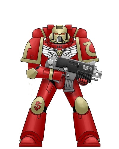 The name Storm Guard isn’t very bloody or angelic (in hindsight, it would have worked great with a Space Wolves, tempest-focussed successor), but I liked it too much and stuck with it. Next was a colour scheme. This was eventually stolen from a forum post somewhere: bone armour with lots of red accents and greco-roman-style helmet plumes. I reversed it and reserved the helmet plumes for sergeants and up. Thank you forgotten forum poster: you inspired a massive army!